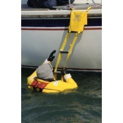 Cette échelle de secours une fois rentrée est sous la forme d'un sac avec des poignées se fixant le long du franc-bord ou du tableau arrière et une autre poignée permet à la personne se trouvant dans l'eau de sortir l'échelle en tirant sur cette poignée afin de remonter à bord.